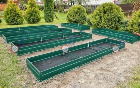 Грядки изготовлены из высококачественной оцинкованной стали, толщиной - 0,5мм. Это самая оптимальная толщина, позволяющая добиться идеального сочетания прочности и веса. В каждом бортике сделано по 8 рёбер жесткости, что повышает прочность грядки примерно на 60%. Грядки, длиной свыше 2 метров комплектуются соединительной планкой-стяжкой. В среднем, срок службы оцинкованных грядок составляет 10 лет и более, а грядок оцинкованных с полимерным покрытием более 15 лет.