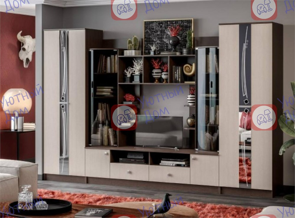 Гостиная Ширина 3400мм Высота 2200мм Глубина 532мм Цвет: дуб атланта/венге, Ясень шимо/венге Цена :42000 руб