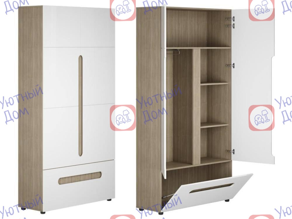 Шкаф двухстворчатый Ширина 1068 мм Глубина 509 мм Высота 2076 мм Цвет белый глянец/сонома 21000